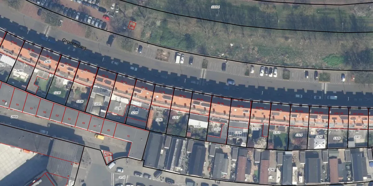 Groenteweg 82 is gelegen op kadastraal perceel GVH20AC1317. Deze kadastrale aanduiding is uniek en wordt gebruikt door het Kadaster om eigendomsrechten en andere zakelijke rechten vast te leggen. Het perceel maakt onderdeel uit van de kadastrale gemeente 's-Gravenhage.