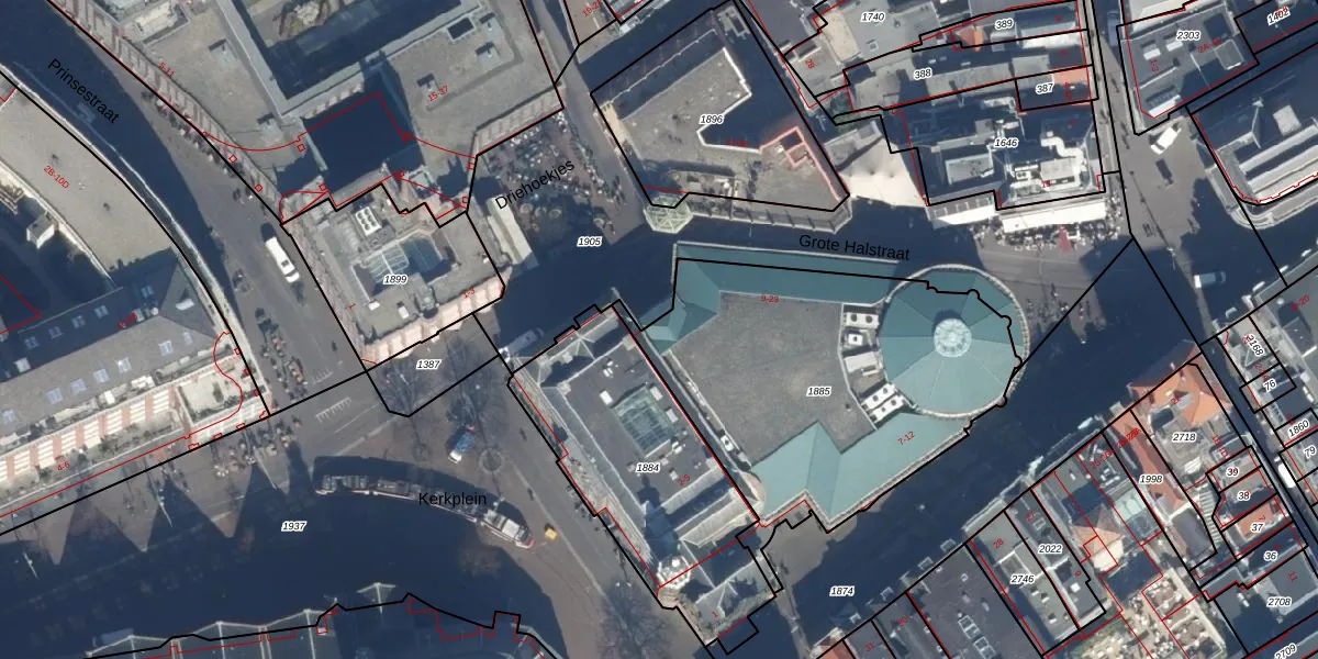 Het perceel waarop Grote Halstraat 9 staat heeft een oppervlakte van 1617 m². Dit is een zeer groot perceel. De perceeloppervlakte wordt geregistreerd door het Kadaster. Gedetailleerde informatie over de maten van dit perceel kunt u vinden in het rapport Kadastrale kaart met maatvoering van Grote Halstraat 9.