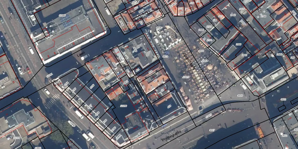 Het perceel waarop Grote Markt 7-L staat heeft een oppervlakte van 90 m². Dit is een klein perceel. De perceeloppervlakte wordt geregistreerd door het Kadaster. Gedetailleerde informatie over de maten van dit perceel kunt u vinden in het rapport Kadastrale kaart met maatvoering van Grote Markt 7-L.