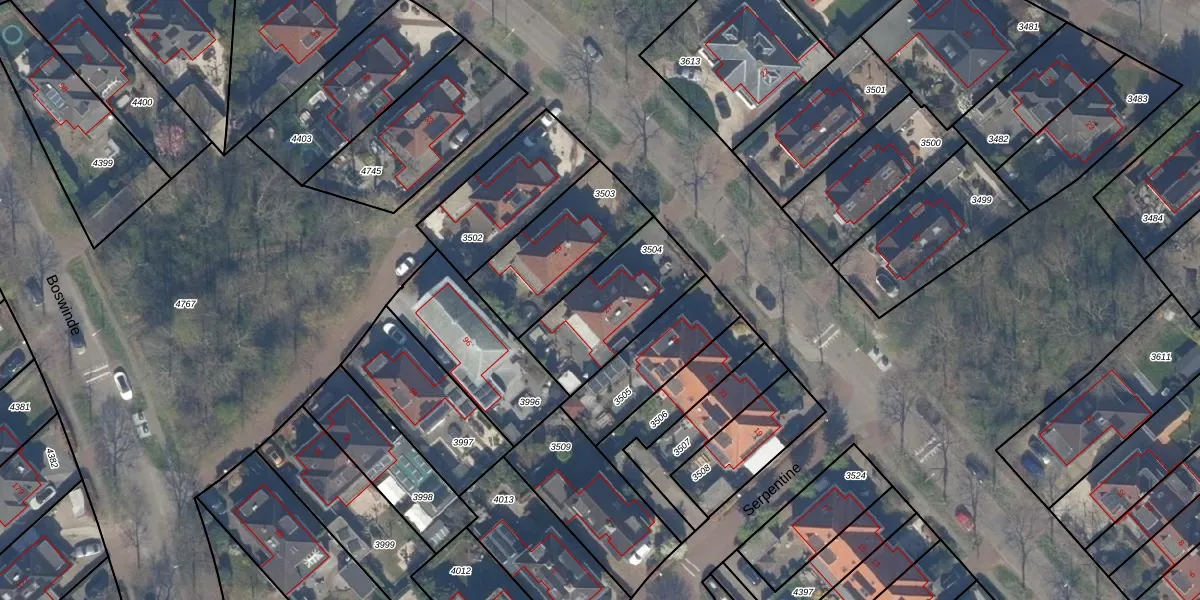 Het perceel waarop Guirlande 27 staat heeft een oppervlakte van 395 m². Dit is een groot perceel. De perceeloppervlakte wordt geregistreerd door het Kadaster. Gedetailleerde informatie over de maten van dit perceel kunt u vinden in het rapport Kadastrale kaart met maatvoering van Guirlande 27.