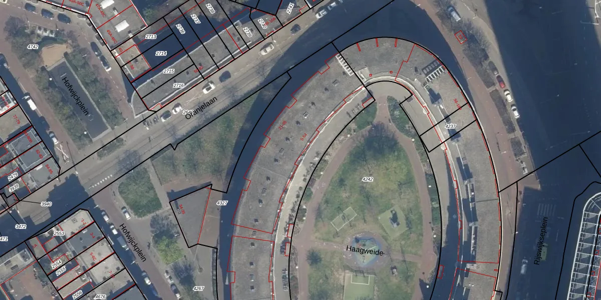 Het perceel waarop het adres ligt is GVH21-AD-4327. De afkorting 'GVH21' staat voor kadastrale gemeente 's-Gravenhage. De gemiddelde perceeloppervlakte in de kadastrale gemeente 's-Gravenhage is 908,69 m². Dit perceel is met zijn 3452 m² dus groter dan gemiddeld. De grootste perceeloppervlakte in de kadastrale gemeente is 9,1 ha. De kleinste oppervlakte bedraagt 0 m². Op het perceel zijn 72 adressen aanwezig. In de Basisregistratie Kadaster (BRK) werden de grenzen van het perceel geregistreerd op 08-12-2003.