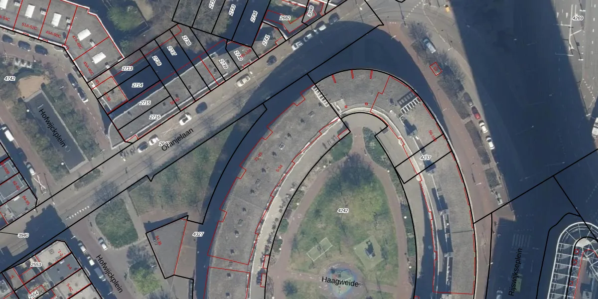 Het perceel waarop het adres ligt is GVH21-AD-4327. De afkorting 'GVH21' staat voor kadastrale gemeente 's-Gravenhage. Het perceel is met 3452 m² relatief groot. Het gemiddelde ligt in de kadastrale gemeente 's-Gravenhage op 908,69 m². Het kleinste perceel in de kadastrale gemeente is 0 m² groot. De grootste perceeloppervlakte is 9,1 ha. Er zijn 72 adressen aanwezig op het perceel. De laatste wijziging in het de Basisregistratie Kadaster (BRK) was op 08-12-2003.