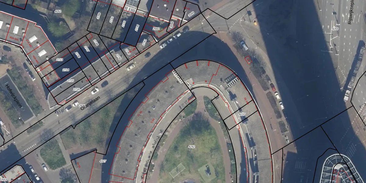 Het perceel waarop het adres ligt is GVH21-AD-4327. De afkorting 'GVH21' staat voor kadastrale gemeente 's-Gravenhage. De gemiddelde perceeloppervlakte in de kadastrale gemeente 's-Gravenhage is 908,69 m². Dit perceel is met zijn 3452 m² dus groter dan gemiddeld. Het kleinste perceel in de kadastrale gemeente is 0 m² groot. De grootste perceeloppervlakte is 9,1 ha. Er zijn 72 adressen aanwezig op het perceel. De huidige grenzen van het perceel zijn digitaal in de Basisregistratie Kadaster (BRK) geregistreerd op 08-12-2003.