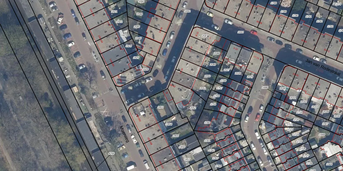 Het perceel waarop Hadewichstraat 36 staat heeft een oppervlakte van 300 m². Dit is een groot perceel. De perceeloppervlakte wordt geregistreerd door het Kadaster. Gedetailleerde informatie over de maten van dit perceel kunt u vinden in het rapport Kadastrale kaart met maatvoering van Hadewichstraat 36.
