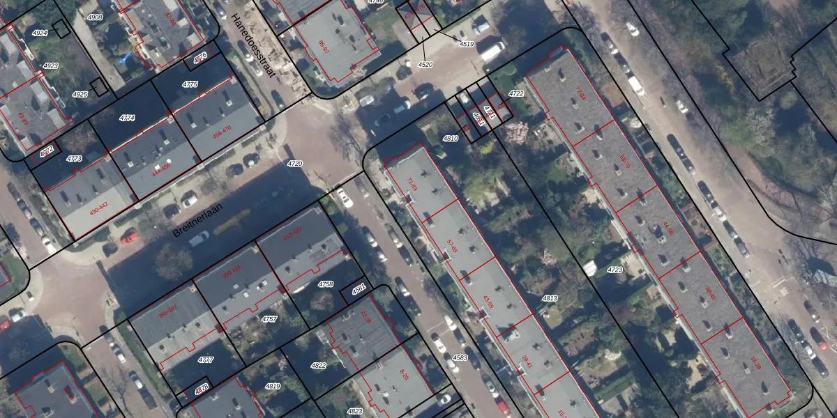 Het perceel waarop het adres ligt is GVH16-X-4813. De afkorting 'GVH16' staat voor kadastrale gemeente 's-Gravenhage. Het perceel is met 3242 m² relatief groot. Het gemiddelde ligt in de kadastrale gemeente 's-Gravenhage op 782,32 m². Het grootste perceel in de kadastrale gemeente is 9,5 ha. Het kleinste perceel heeft een oppervlakte van 0 m². Op het perceel liggen in totaal 35 adressen. De huidige grenzen van het perceel zijn digitaal in de Basisregistratie Kadaster (BRK) geregistreerd op 23-12-2003.