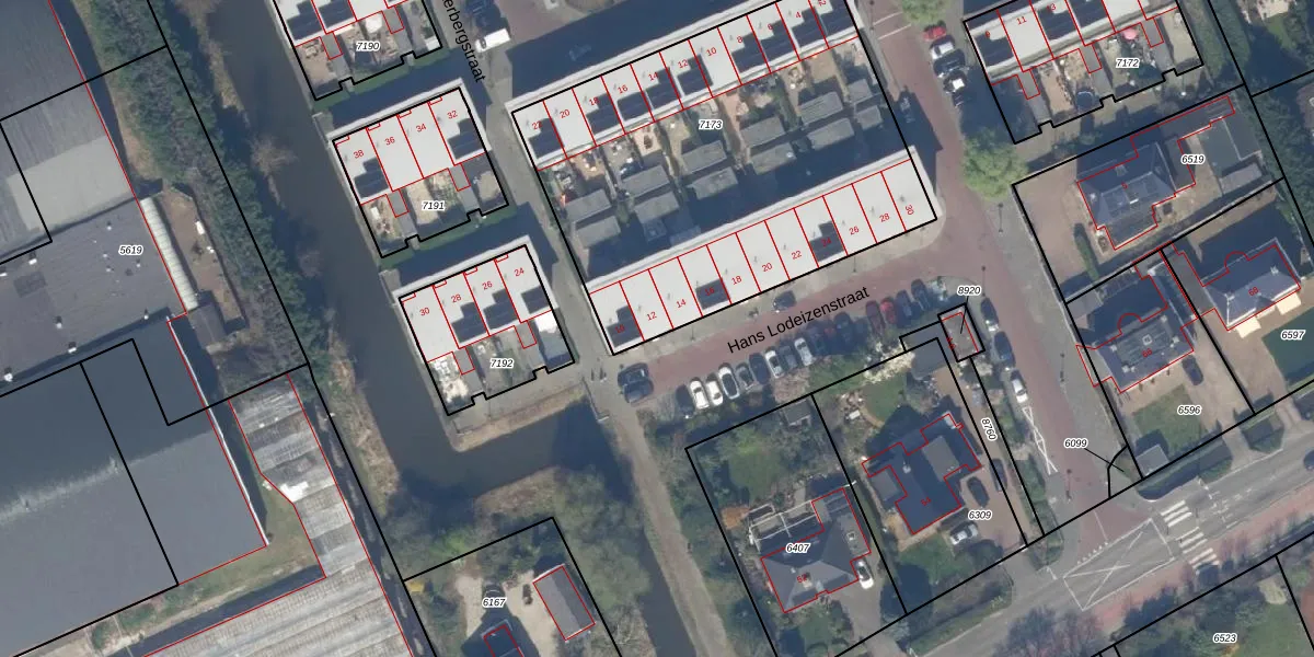 Het perceel waarop Hans Lodeizenstraat 12 staat heeft een oppervlakte van 2133 m². Dit is een zeer groot perceel. De perceeloppervlakte wordt geregistreerd door het Kadaster. Gedetailleerde informatie over de maten van dit perceel kunt u vinden in het rapport Kadastrale kaart met maatvoering van Hans Lodeizenstraat 12.