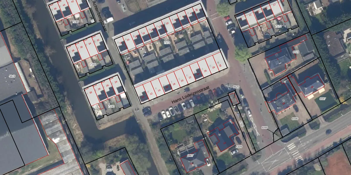Het perceel waarop Hans Lodeizenstraat 18 staat heeft een oppervlakte van 2133 m². Dit is een zeer groot perceel. De perceeloppervlakte wordt geregistreerd door het Kadaster. Gedetailleerde informatie over de maten van dit perceel kunt u vinden in het rapport Kadastrale kaart met maatvoering van Hans Lodeizenstraat 18.