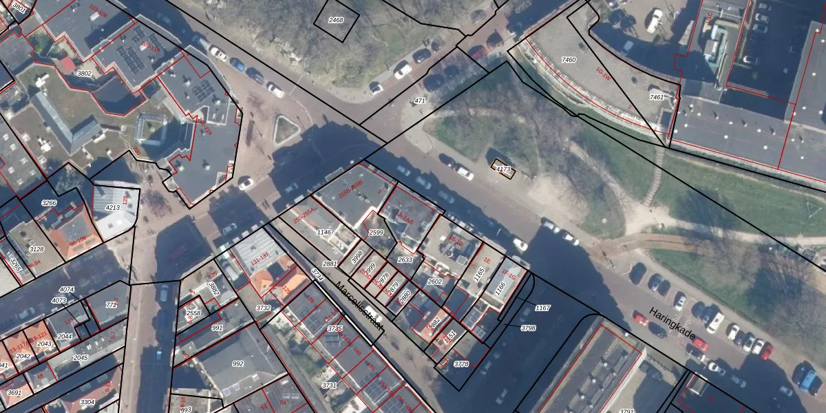 Haringkade 1-A-2 is gelegen op kadastraal perceel GVH24AG2633. Deze kadastrale aanduiding is uniek en wordt gebruikt door het Kadaster om eigendomsrechten en andere zakelijke rechten vast te leggen. Het perceel maakt onderdeel uit van de kadastrale gemeente 's-Gravenhage.