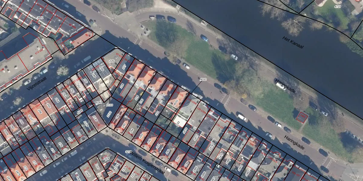 Haringkade 121-B is gelegen op kadastraal perceel GVH24AG4031. Deze kadastrale aanduiding is uniek en wordt gebruikt door het Kadaster om eigendomsrechten en andere zakelijke rechten vast te leggen. Het perceel maakt onderdeel uit van de kadastrale gemeente 's-Gravenhage.