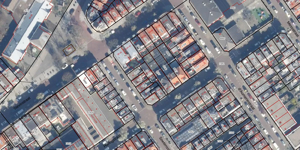 Het perceel waarop Haringstraat 22-B staat heeft een oppervlakte van 91 m². Dit is een klein perceel. De perceeloppervlakte wordt geregistreerd door het Kadaster. Gedetailleerde informatie over de maten van dit perceel kunt u vinden in het rapport Kadastrale kaart met maatvoering van Haringstraat 22-B.