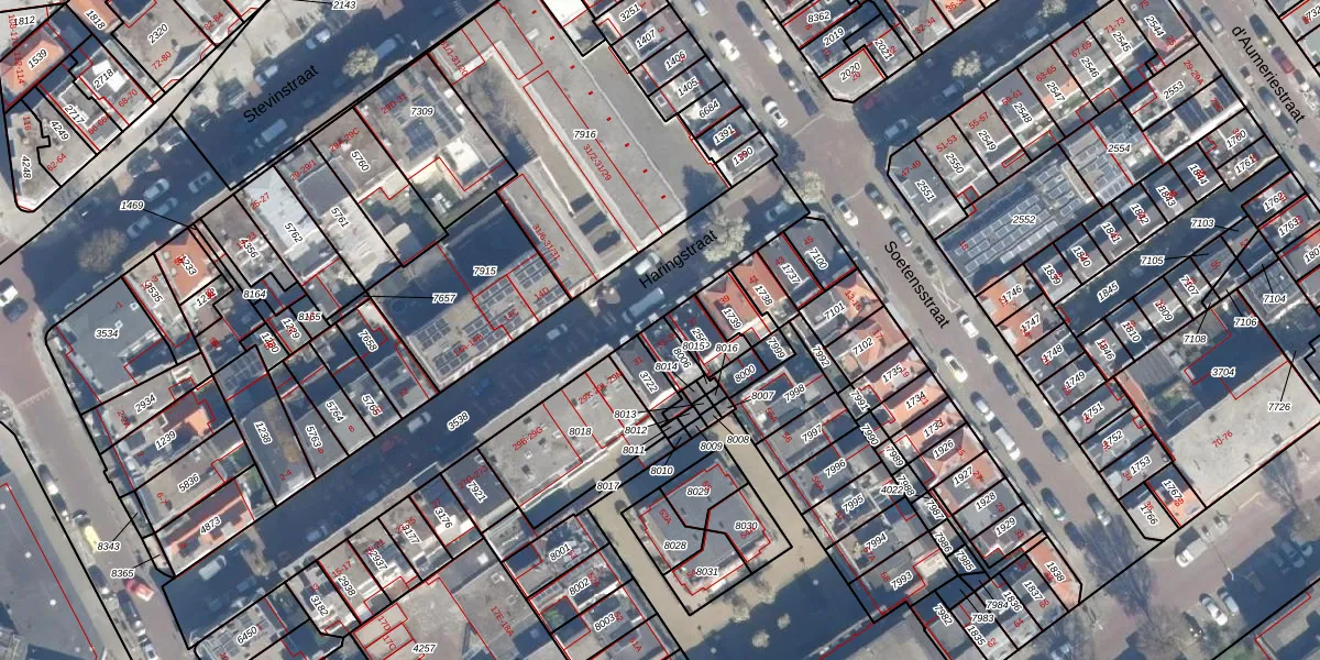 Het perceel waarop Haringstraat 33 staat heeft een oppervlakte van 53 m². Dit is een klein perceel. De perceeloppervlakte wordt geregistreerd door het Kadaster. Gedetailleerde informatie over de maten van dit perceel kunt u vinden in het rapport Kadastrale kaart met maatvoering van Haringstraat 33.