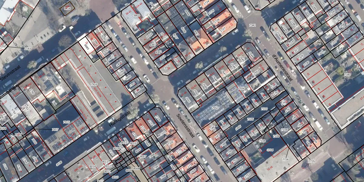 Het perceel waarop Haringstraat 47 staat heeft een oppervlakte van 87 m². Dit is een klein perceel. De perceeloppervlakte wordt geregistreerd door het Kadaster. Gedetailleerde informatie over de maten van dit perceel kunt u vinden in het rapport Kadastrale kaart met maatvoering van Haringstraat 47.