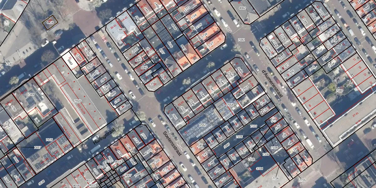 Het perceel waarop Haringstraat 55 staat heeft een oppervlakte van 80 m². Dit is een klein perceel. De perceeloppervlakte wordt geregistreerd door het Kadaster. Gedetailleerde informatie over de maten van dit perceel kunt u vinden in het rapport Kadastrale kaart met maatvoering van Haringstraat 55.