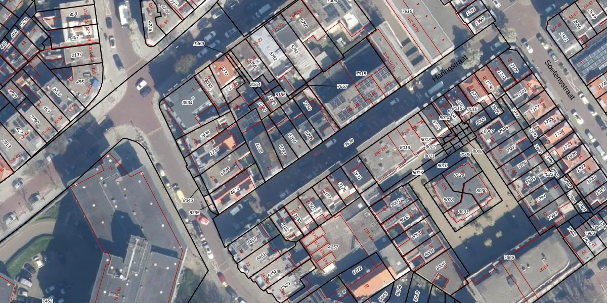 Het perceel waarop Haringstraat 8 staat heeft een oppervlakte van 87 m². Dit is een klein perceel. De perceeloppervlakte wordt geregistreerd door het Kadaster. Gedetailleerde informatie over de maten van dit perceel kunt u vinden in het rapport Kadastrale kaart met maatvoering van Haringstraat 8.