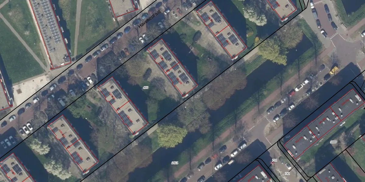 Haveltestraat 104 is gelegen op kadastraal perceel GVH37AW455. Deze kadastrale aanduiding is uniek en wordt gebruikt door het Kadaster om eigendomsrechten en andere zakelijke rechten vast te leggen. Het perceel maakt onderdeel uit van de kadastrale gemeente 's-Gravenhage.
