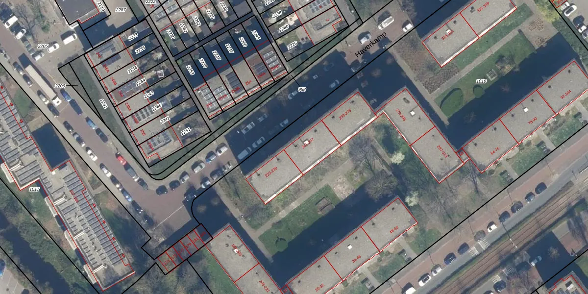 Het perceel waarop Haverkamp 245 staat heeft een oppervlakte van 9208 m². Dit is een zeer groot perceel. De perceeloppervlakte wordt geregistreerd door het Kadaster. Gedetailleerde informatie over de maten van dit perceel kunt u vinden in het rapport Kadastrale kaart met maatvoering van Haverkamp 245.