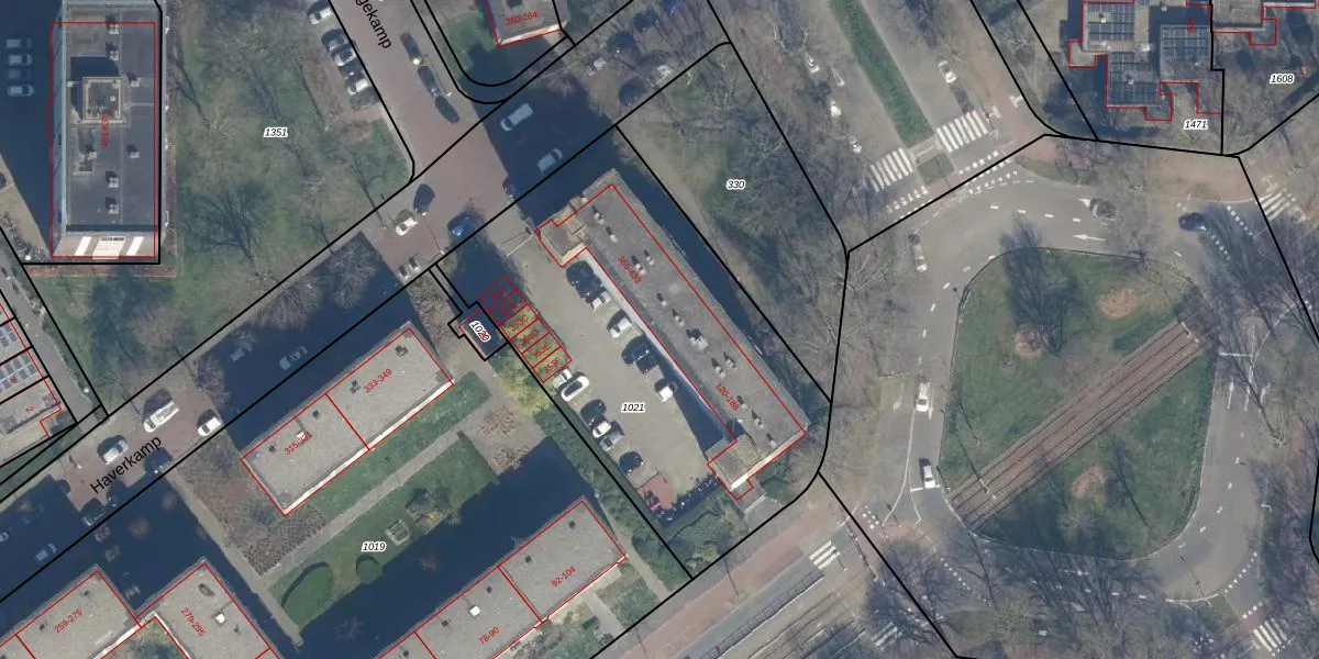 Het perceel waarop Haverkamp 423 staat heeft een oppervlakte van 2021 m². Dit is een zeer groot perceel. De perceeloppervlakte wordt geregistreerd door het Kadaster. Gedetailleerde informatie over de maten van dit perceel kunt u vinden in het rapport Kadastrale kaart met maatvoering van Haverkamp 423.