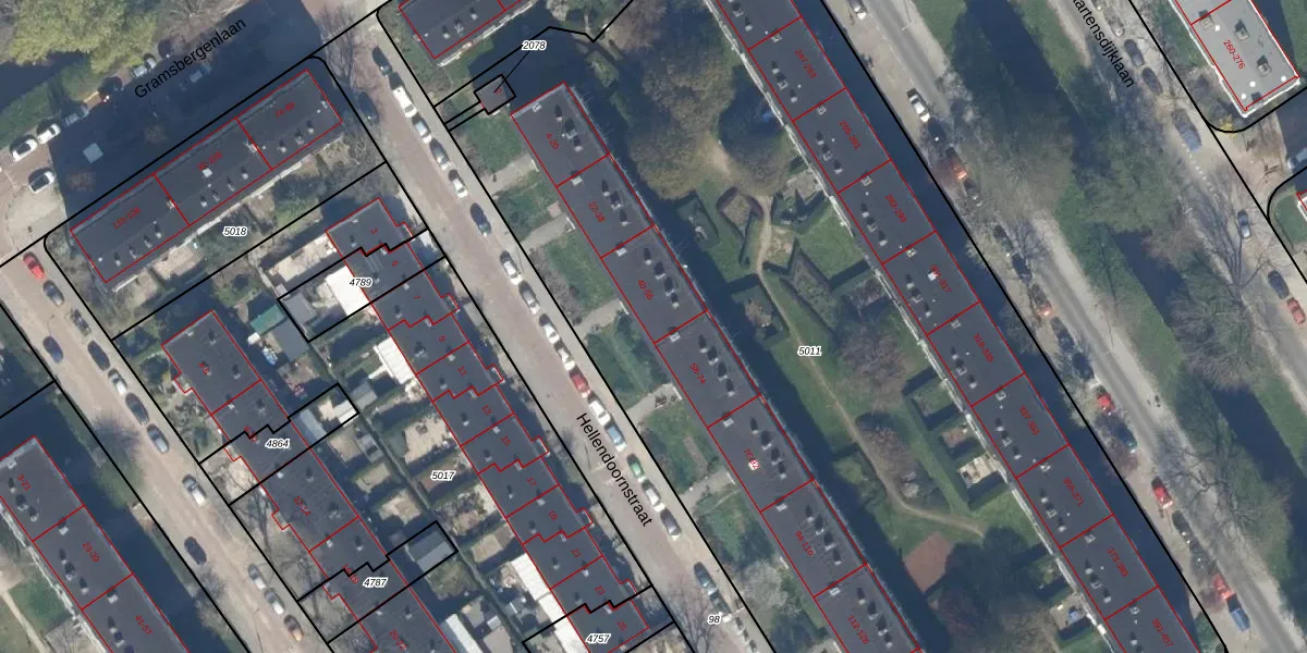 Hellendoornstraat 56 is gelegen op kadastraal perceel GVH37AW5011. Deze kadastrale aanduiding is uniek en wordt gebruikt door het Kadaster om eigendomsrechten en andere zakelijke rechten vast te leggen. Het perceel maakt onderdeel uit van de kadastrale gemeente 's-Gravenhage.