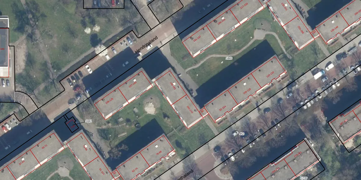 Hendrinaland 155 is gelegen op kadastraal perceel GVH34AS1843. Deze kadastrale aanduiding is uniek en wordt gebruikt door het Kadaster om eigendomsrechten en andere zakelijke rechten vast te leggen. Het perceel maakt onderdeel uit van de kadastrale gemeente 's-Gravenhage.
