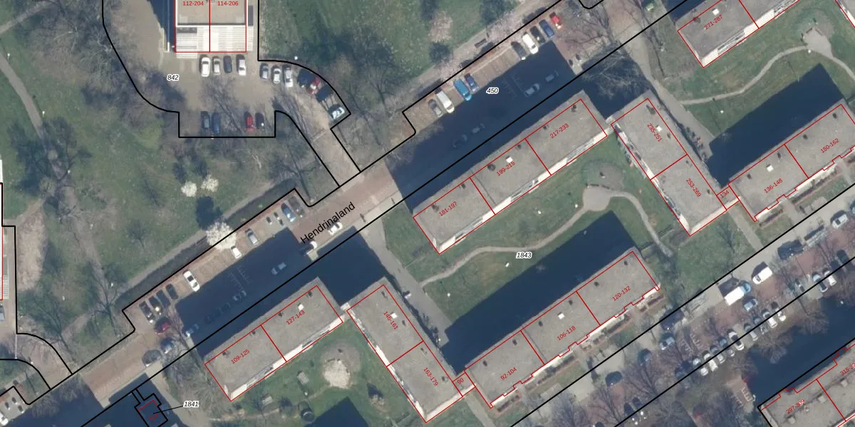 Hendrinaland 181 is gelegen op kadastraal perceel GVH34AS1843. Deze kadastrale aanduiding is uniek en wordt gebruikt door het Kadaster om eigendomsrechten en andere zakelijke rechten vast te leggen. Het perceel maakt onderdeel uit van de kadastrale gemeente 's-Gravenhage.