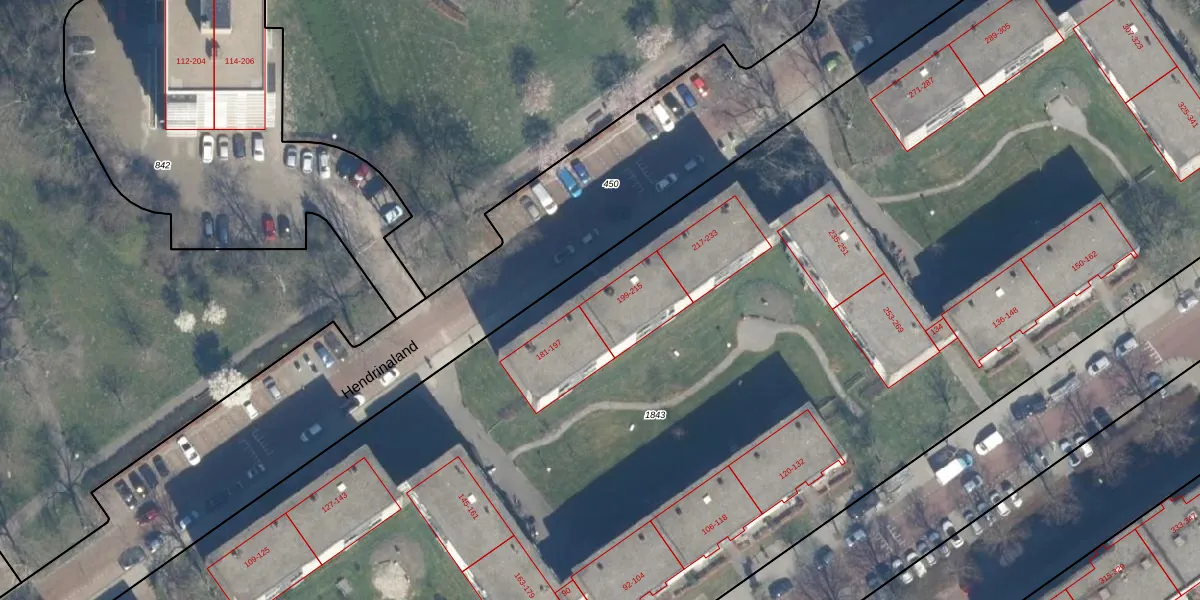 Hendrinaland 199 is gelegen op kadastraal perceel GVH34AS1843. Deze kadastrale aanduiding is uniek en wordt gebruikt door het Kadaster om eigendomsrechten en andere zakelijke rechten vast te leggen. Het perceel maakt onderdeel uit van de kadastrale gemeente 's-Gravenhage.