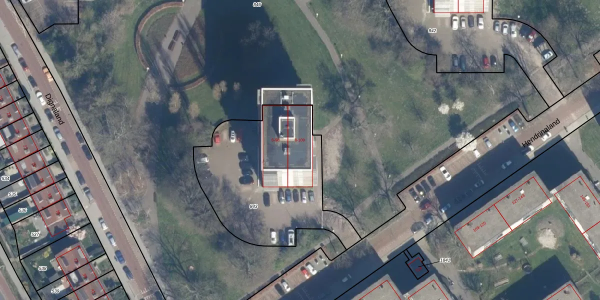 Het perceel waarop Hendrinaland 38 staat heeft een oppervlakte van 1654 m². Dit is een zeer groot perceel. De perceeloppervlakte wordt geregistreerd door het Kadaster. Gedetailleerde informatie over de maten van dit perceel kunt u vinden in het rapport Kadastrale kaart met maatvoering van Hendrinaland 38.