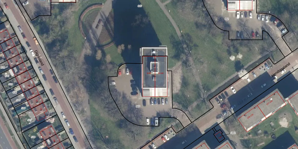 Het perceel waarop Hendrinaland 98 staat heeft een oppervlakte van 1654 m². Dit is een zeer groot perceel. De perceeloppervlakte wordt geregistreerd door het Kadaster. Gedetailleerde informatie over de maten van dit perceel kunt u vinden in het rapport Kadastrale kaart met maatvoering van Hendrinaland 98.