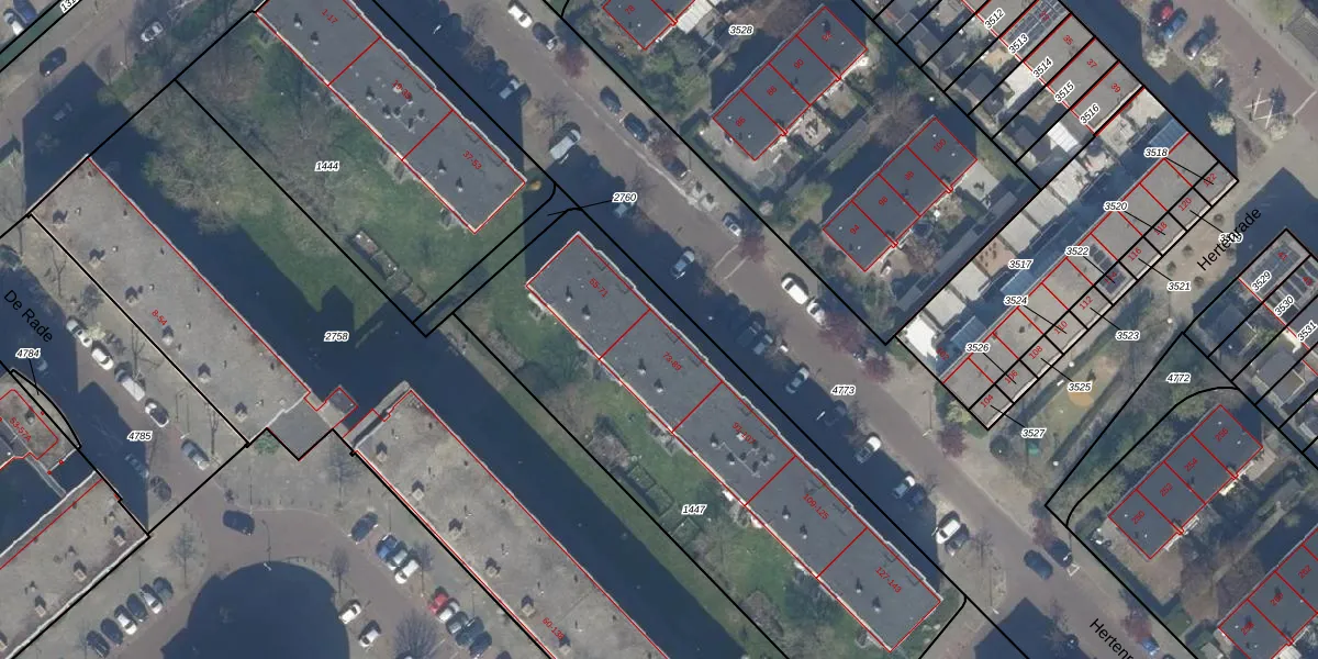 Hertenrade 77 is gelegen op kadastraal perceel GVH37AW1447. Deze kadastrale aanduiding is uniek en wordt gebruikt door het Kadaster om eigendomsrechten en andere zakelijke rechten vast te leggen. Het perceel maakt onderdeel uit van de kadastrale gemeente 's-Gravenhage.