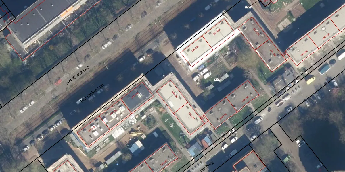 Het Kleine Loo 185 is gelegen op kadastraal perceel GVH34AS1027. Deze kadastrale aanduiding is uniek en wordt gebruikt door het Kadaster om eigendomsrechten en andere zakelijke rechten vast te leggen. Het perceel maakt onderdeel uit van de kadastrale gemeente 's-Gravenhage.