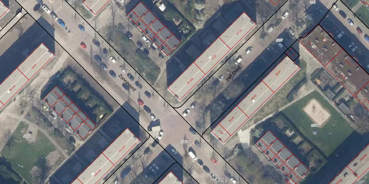 Het perceel waarop Het Oord 103 staat heeft een oppervlakte van 8756 m². Dit is een zeer groot perceel. De perceeloppervlakte wordt geregistreerd door het Kadaster. Gedetailleerde informatie over de maten van dit perceel kunt u vinden in het rapport Kadastrale kaart met maatvoering van Het Oord 103.