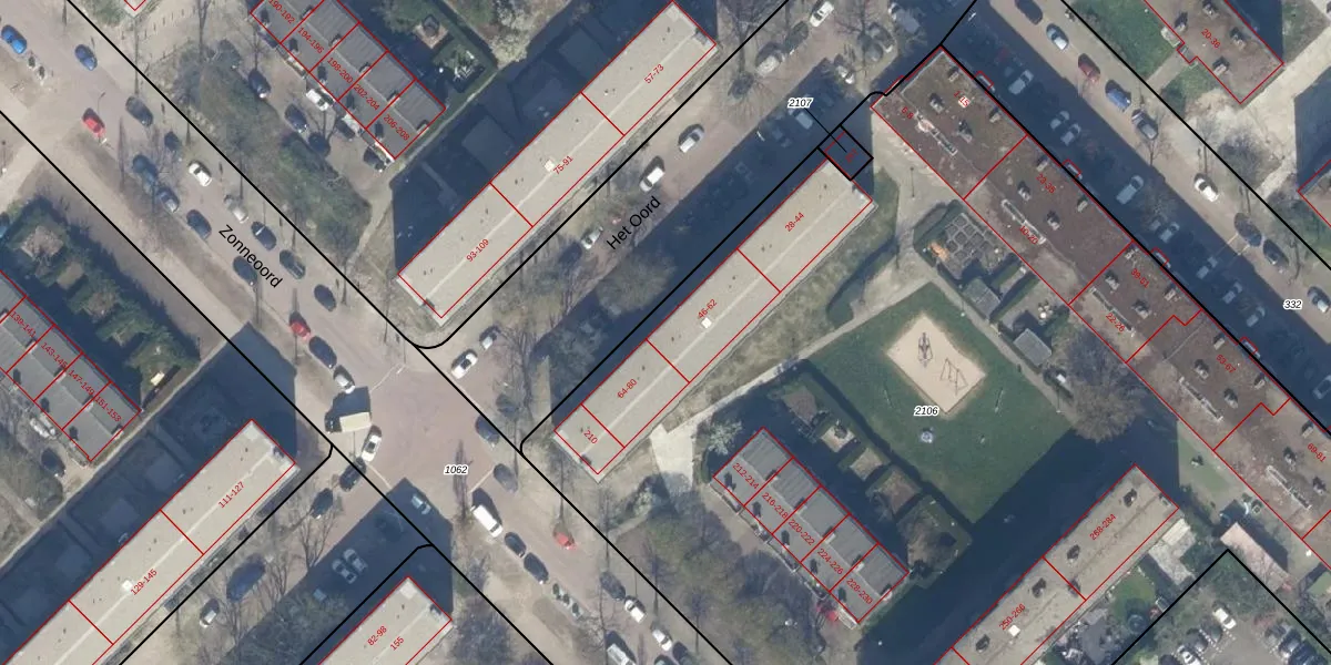 Het Oord 56 is gelegen op kadastraal perceel GVH37AW2106. Deze kadastrale aanduiding is uniek en wordt gebruikt door het Kadaster om eigendomsrechten en andere zakelijke rechten vast te leggen. Het perceel maakt onderdeel uit van de kadastrale gemeente 's-Gravenhage.
