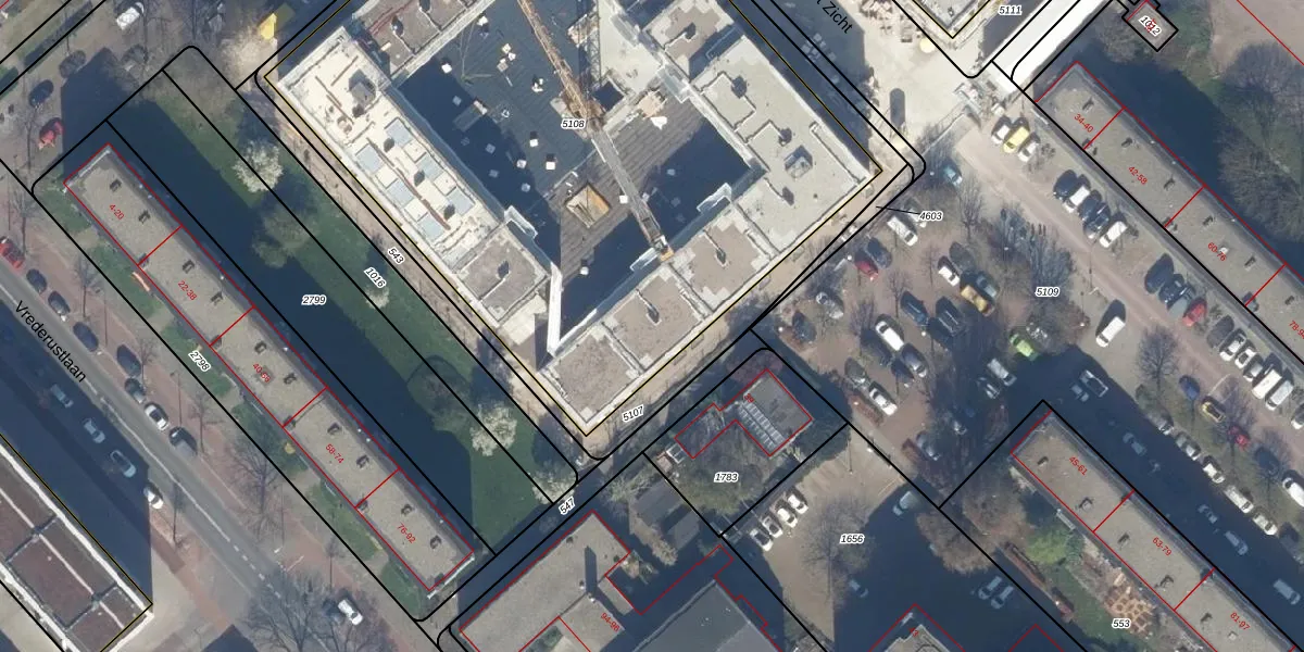 Het perceel waarop het adres ligt is GVH37-AW-5108. De afkorting 'GVH37' staat voor kadastrale gemeente 's-Gravenhage. Het perceel is met 4537 m² relatief groot. Het gemiddelde ligt in de kadastrale gemeente 's-Gravenhage op 1320,78 m². Het kleinste perceel in de kadastrale gemeente is 0 m² groot. De grootste perceeloppervlakte is 12,9 ha. Op het perceel zijn 117 adressen aanwezig. De huidige grenzen van het perceel zijn digitaal in de Basisregistratie Kadaster (BRK) geregistreerd op 22-06-2023.