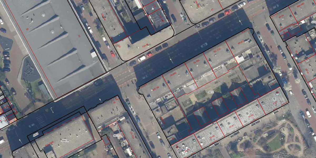 Het perceel waarop Hobbemastraat 84 staat heeft een oppervlakte van 4279 m². Dit is een zeer groot perceel. De perceeloppervlakte wordt geregistreerd door het Kadaster. Gedetailleerde informatie over de maten van dit perceel kunt u vinden in het rapport Kadastrale kaart met maatvoering van Hobbemastraat 84.