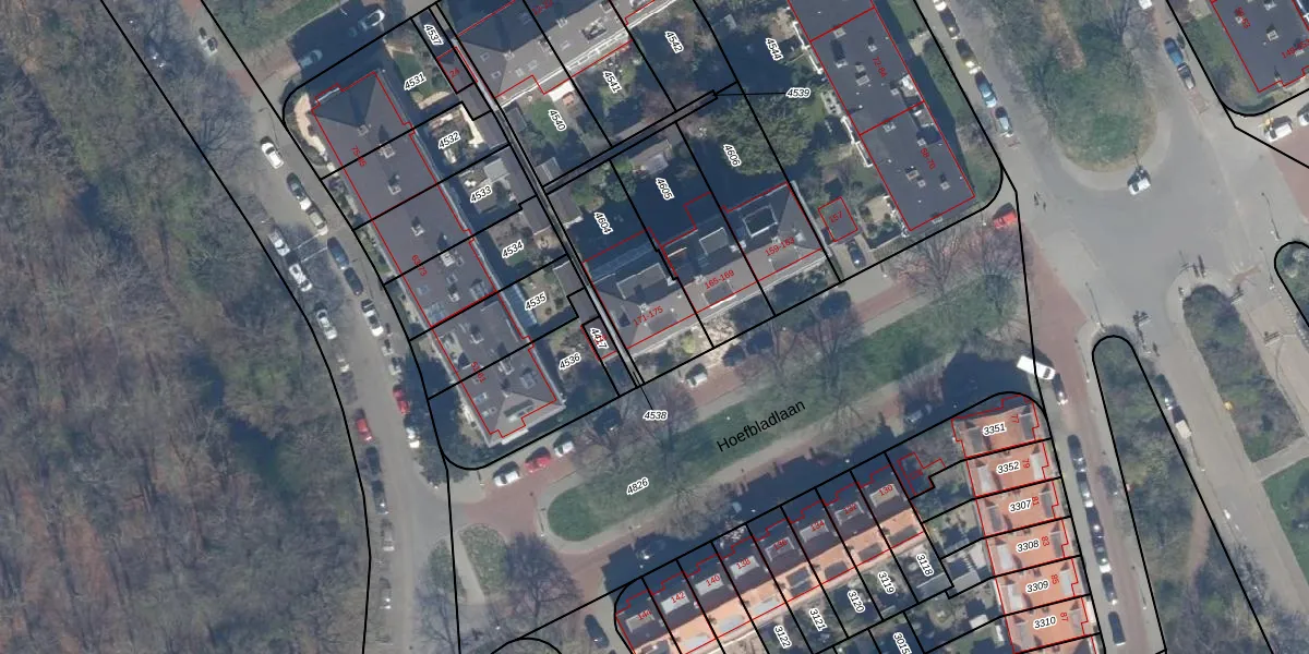 Hoefbladlaan 171 is gelegen op kadastraal perceel LDN03H4604. Deze kadastrale aanduiding is uniek en wordt gebruikt door het Kadaster om eigendomsrechten en andere zakelijke rechten vast te leggen. Het perceel maakt onderdeel uit van de kadastrale gemeente Loosduinen.