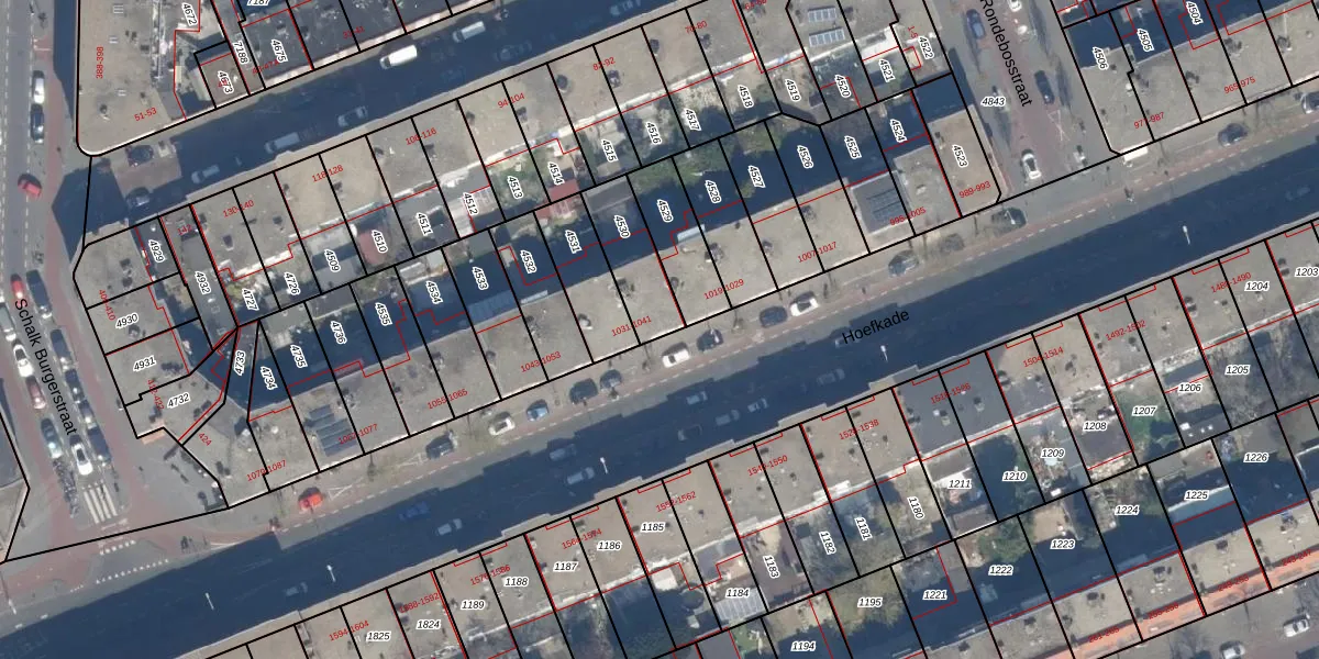 Hoefkade 1035 is gelegen op kadastraal perceel GVH19AB4530. Deze kadastrale aanduiding is uniek en wordt gebruikt door het Kadaster om eigendomsrechten en andere zakelijke rechten vast te leggen. Het perceel maakt onderdeel uit van de kadastrale gemeente 's-Gravenhage.