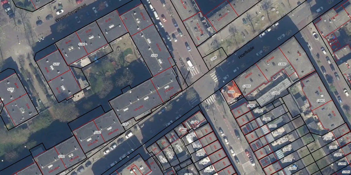 Hoefkade 119-A is gelegen op kadastraal perceel GVH22AE5208. Deze kadastrale aanduiding is uniek en wordt gebruikt door het Kadaster om eigendomsrechten en andere zakelijke rechten vast te leggen. Het perceel maakt onderdeel uit van de kadastrale gemeente 's-Gravenhage.