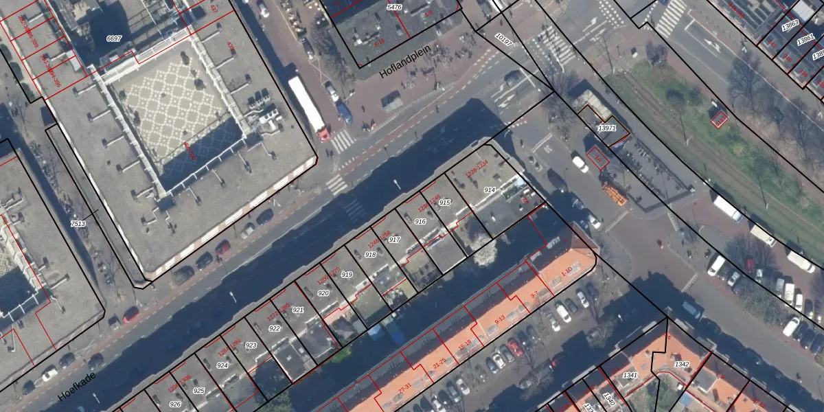 Hoefkade 1244 is gelegen op kadastraal perceel GVH20AC916. Deze kadastrale aanduiding is uniek en wordt gebruikt door het Kadaster om eigendomsrechten en andere zakelijke rechten vast te leggen. Het perceel maakt onderdeel uit van de kadastrale gemeente 's-Gravenhage.