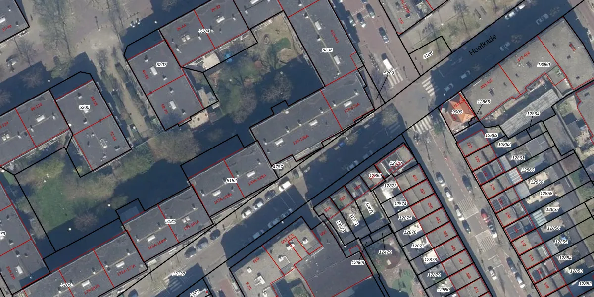 Hoefkade 133 is gelegen op kadastraal perceel GVH22AE5208. Deze kadastrale aanduiding is uniek en wordt gebruikt door het Kadaster om eigendomsrechten en andere zakelijke rechten vast te leggen. Het perceel maakt onderdeel uit van de kadastrale gemeente 's-Gravenhage.