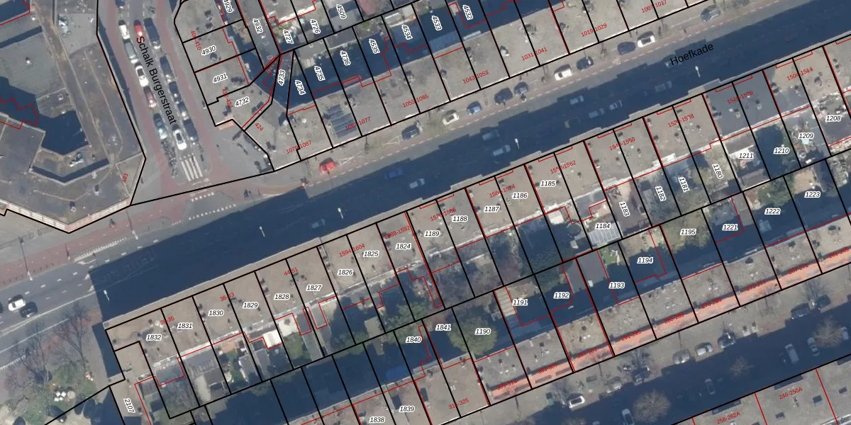 Het perceel waarop Hoefkade 1582 staat heeft een oppervlakte van 187 m². Dit is een middelgroot perceel. De perceeloppervlakte wordt geregistreerd door het Kadaster. Gedetailleerde informatie over de maten van dit perceel kunt u vinden in het rapport Kadastrale kaart met maatvoering van Hoefkade 1582.