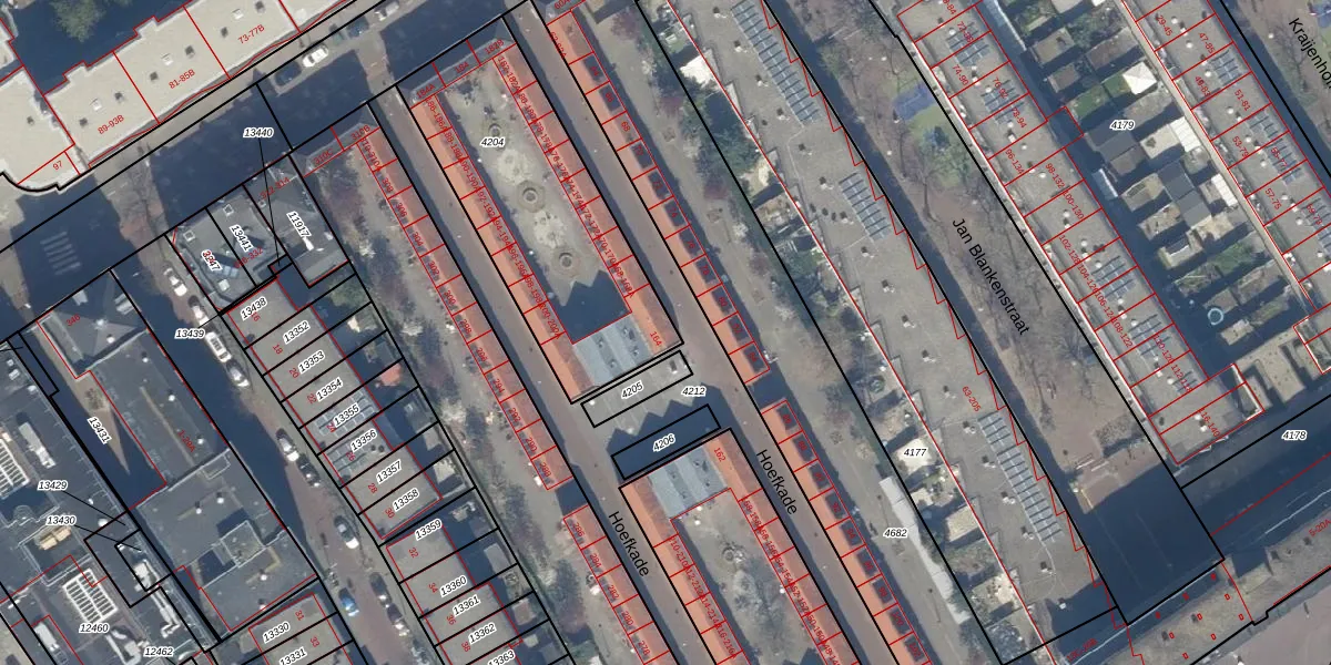 Hoefkade 164 is gelegen op kadastraal perceel GVH21AD4204. Deze kadastrale aanduiding is uniek en wordt gebruikt door het Kadaster om eigendomsrechten en andere zakelijke rechten vast te leggen. Het perceel maakt onderdeel uit van de kadastrale gemeente 's-Gravenhage.