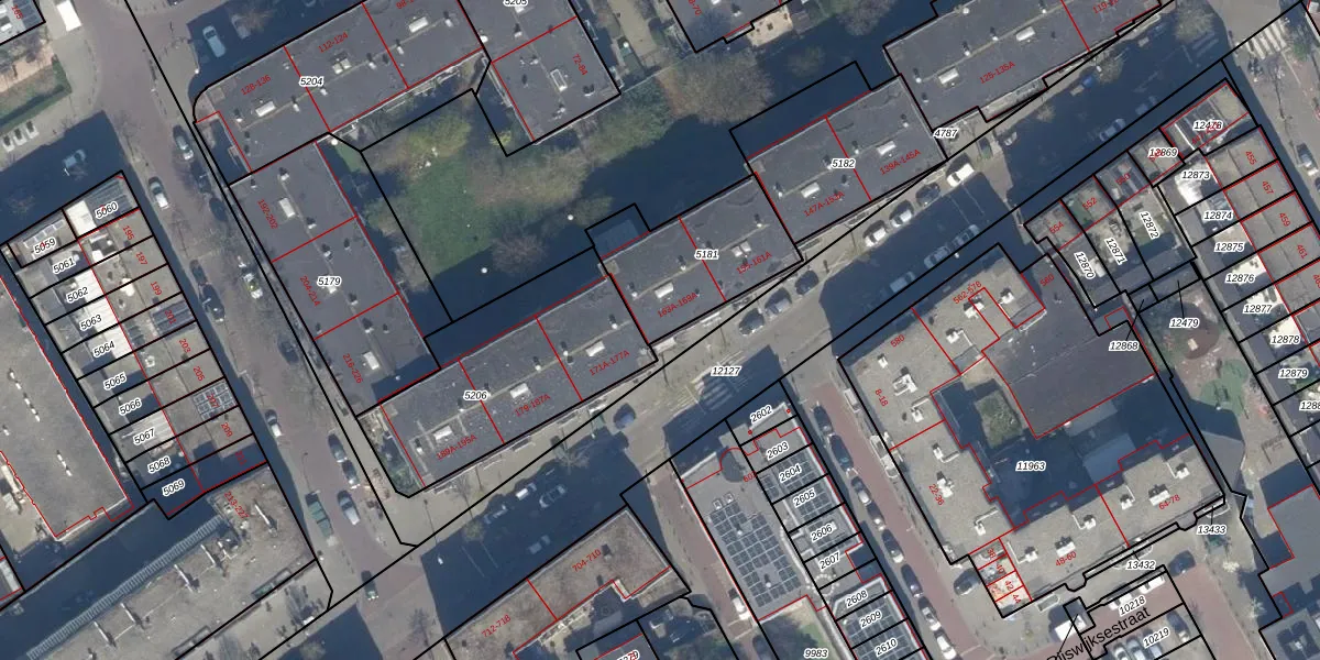 Het adres is gelegen op perceel 5181 in de sectie AE en de kadastrale gemeente 's-Gravenhage. De kadastrale aanduiding is aldus GVH22-AE-5181. Het perceel is kleiner dan gemiddeld in 's-Gravenhage. Het perceel is 442 m² groot, terwijl het gemiddelde ligt op 493,72 m². Het grootste perceel in de kadastrale gemeente is 9,7 ha. Het kleinste perceel heeft een oppervlakte van 1 m². Op het perceel zijn 15 adressen aanwezig. In de Basisregistratie Kadaster (BRK) werden de grenzen van het perceel geregistreerd op 17-01-2005.