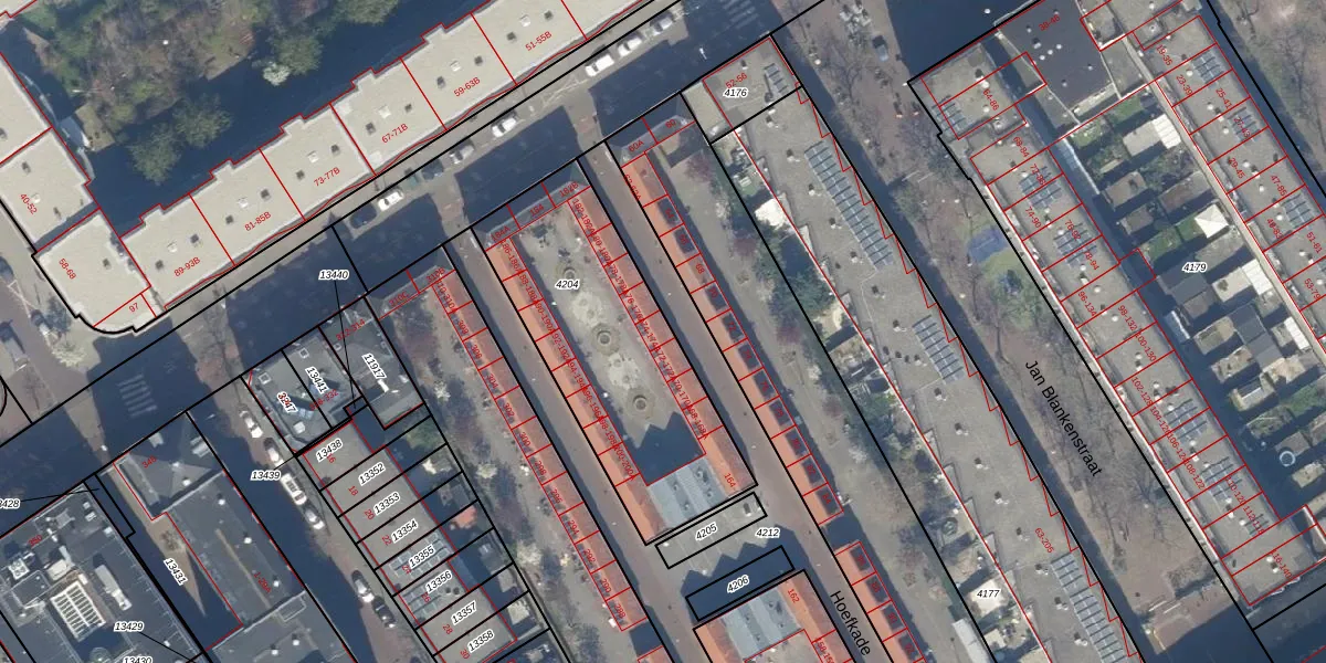 Hoefkade 174-A is gelegen op kadastraal perceel GVH21AD4204. Deze kadastrale aanduiding is uniek en wordt gebruikt door het Kadaster om eigendomsrechten en andere zakelijke rechten vast te leggen. Het perceel maakt onderdeel uit van de kadastrale gemeente 's-Gravenhage.