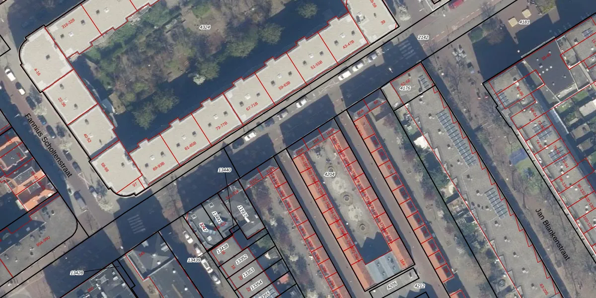 Het adres is gelegen op perceel 4204 in de sectie AD en de kadastrale gemeente 's-Gravenhage. De kadastrale aanduiding is aldus GVH21-AD-4204. De gemiddelde perceeloppervlakte in de kadastrale gemeente 's-Gravenhage is 908,69 m². Dit perceel is met zijn 1058 m² dus groter dan gemiddeld. Het grootste perceel in de kadastrale gemeente is 9,1 ha. Het kleinste perceel heeft een oppervlakte van 0 m². Op het perceel liggen in totaal 36 adressen. De laatste wijziging in het de Basisregistratie Kadaster (BRK) was op 02-12-2003.