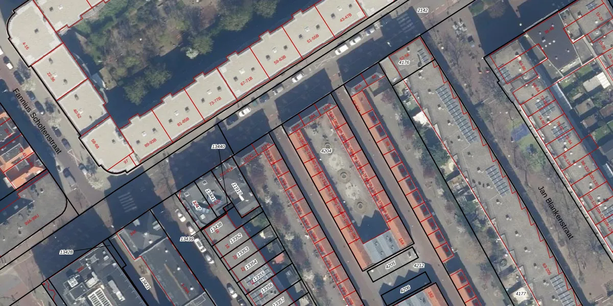 Het adres is gelegen op perceel 4204 in de sectie AD en de kadastrale gemeente 's-Gravenhage. De kadastrale aanduiding is aldus GVH21-AD-4204. De gemiddelde perceeloppervlakte in de kadastrale gemeente 's-Gravenhage is 908,69 m². Dit perceel is met zijn 1058 m² dus groter dan gemiddeld. De grootste perceeloppervlakte in de kadastrale gemeente is 9,1 ha. De kleinste oppervlakte bedraagt 0 m². Op het perceel zijn 36 adressen aanwezig. In de Basisregistratie Kadaster (BRK) werden de grenzen van het perceel geregistreerd op 02-12-2003.