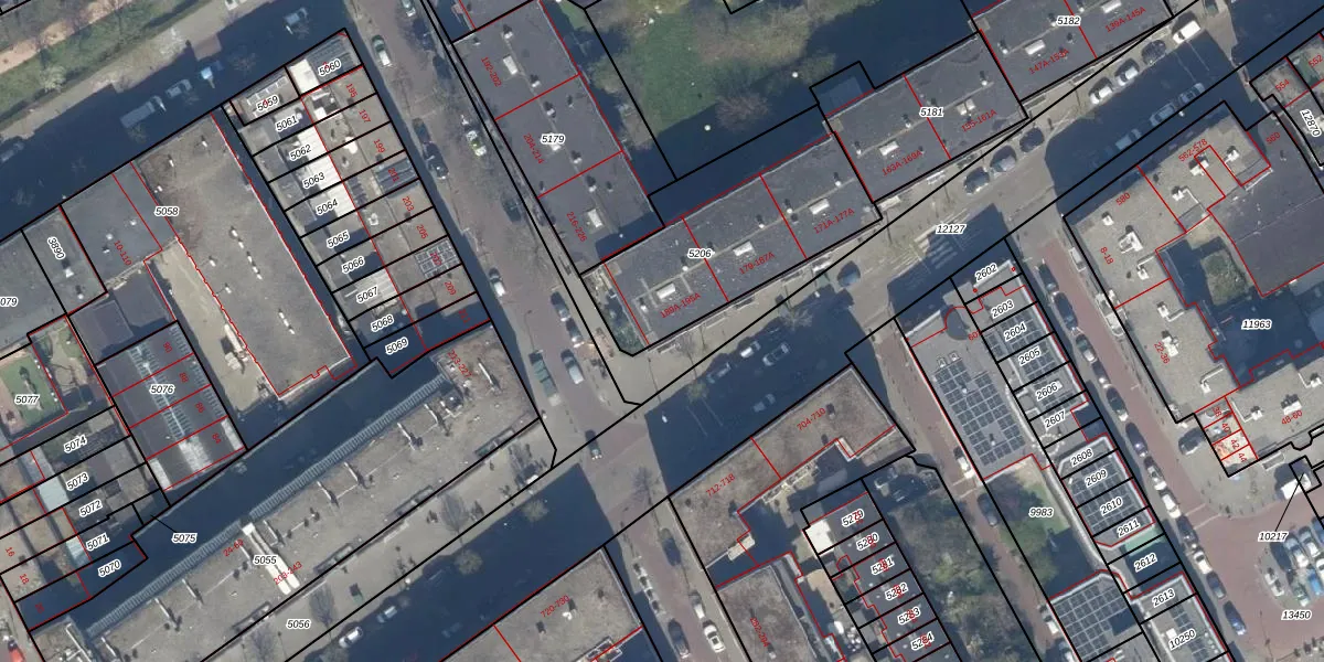 Het adres is gelegen op perceel 5206 in de sectie AE en de kadastrale gemeente 's-Gravenhage. De kadastrale aanduiding is aldus GVH22-AE-5206. De oppervlakte van het perceel is 801 m². Dat is groter dan gemiddeld in 's-Gravenhage, waar de gemiddelde perceeloppervlakte op 493,72 m² ligt. De grootste perceeloppervlakte in de kadastrale gemeente is 9,7 ha. De kleinste oppervlakte bedraagt 1 m². Op het perceel zijn 22 adressen aanwezig. In de Basisregistratie Kadaster (BRK) werden de grenzen van het perceel geregistreerd op 17-01-2005.