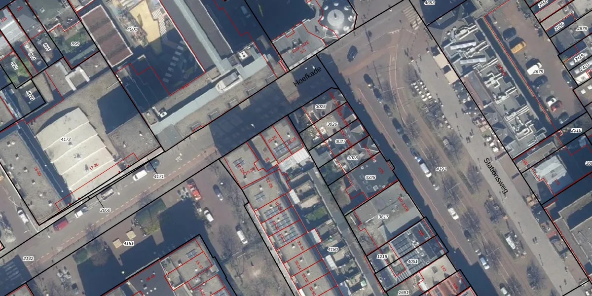 Hoefkade 28 is gelegen op kadastraal perceel GVH21AD4180. Deze kadastrale aanduiding is uniek en wordt gebruikt door het Kadaster om eigendomsrechten en andere zakelijke rechten vast te leggen. Het perceel maakt onderdeel uit van de kadastrale gemeente 's-Gravenhage.