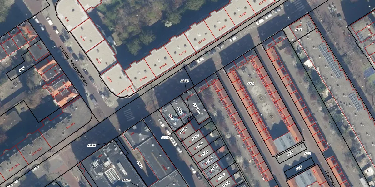 Het perceel waarop het adres ligt is GVH08-L-11917. De afkorting 'GVH08' staat voor kadastrale gemeente 's-Gravenhage. Het perceel is kleiner dan gemiddeld in 's-Gravenhage. Het perceel is 138 m² groot, terwijl het gemiddelde ligt op 468,2 m². Het grootste perceel in de kadastrale gemeente is 3,8 ha. Het kleinste perceel heeft een oppervlakte van 0 m². Er zijn 2 adressen aanwezig op het perceel. In de Basisregistratie Kadaster (BRK) werden de grenzen van het perceel geregistreerd op 03-03-2014.