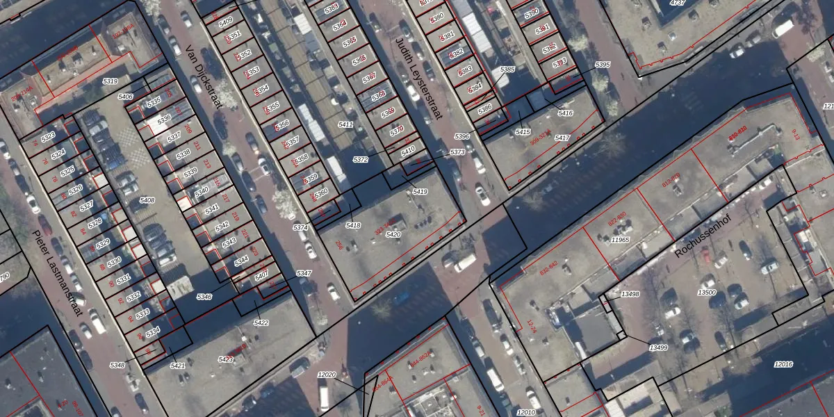 Het adres ligt op het perceel GVH22-AE-5420, dat zich in de kadastrale gemeente 's-Gravenhage bevindt. Het perceel is met 606 m² relatief groot. Het gemiddelde ligt in de kadastrale gemeente 's-Gravenhage op 493,72 m². Het grootste perceel in de kadastrale gemeente is 9,7 ha. Het kleinste perceel heeft een oppervlakte van 1 m². Er zijn 19 adressen aanwezig op het perceel. De huidige grenzen van het perceel zijn digitaal in de Basisregistratie Kadaster (BRK) geregistreerd op 22-02-2010.