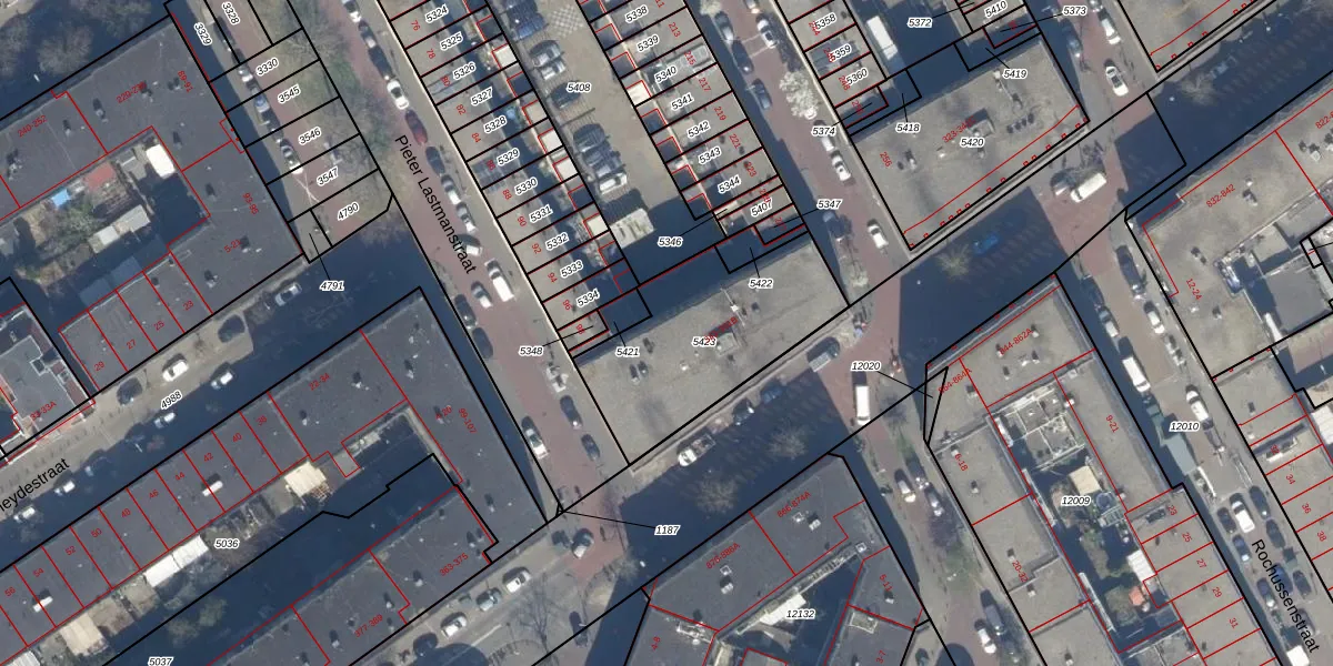Het adres is gelegen op perceel 5423 in de sectie AE en de kadastrale gemeente 's-Gravenhage. De kadastrale aanduiding is aldus GVH22-AE-5423. De oppervlakte van het perceel is 693 m². Dat is groter dan gemiddeld in 's-Gravenhage, waar de gemiddelde perceeloppervlakte op 493,72 m² ligt. De grootste perceeloppervlakte in de kadastrale gemeente is 9,7 ha. De kleinste oppervlakte bedraagt 1 m². Op het perceel liggen in totaal 20 adressen. De huidige grenzen van het perceel zijn digitaal in de Basisregistratie Kadaster (BRK) geregistreerd op 22-02-2010.