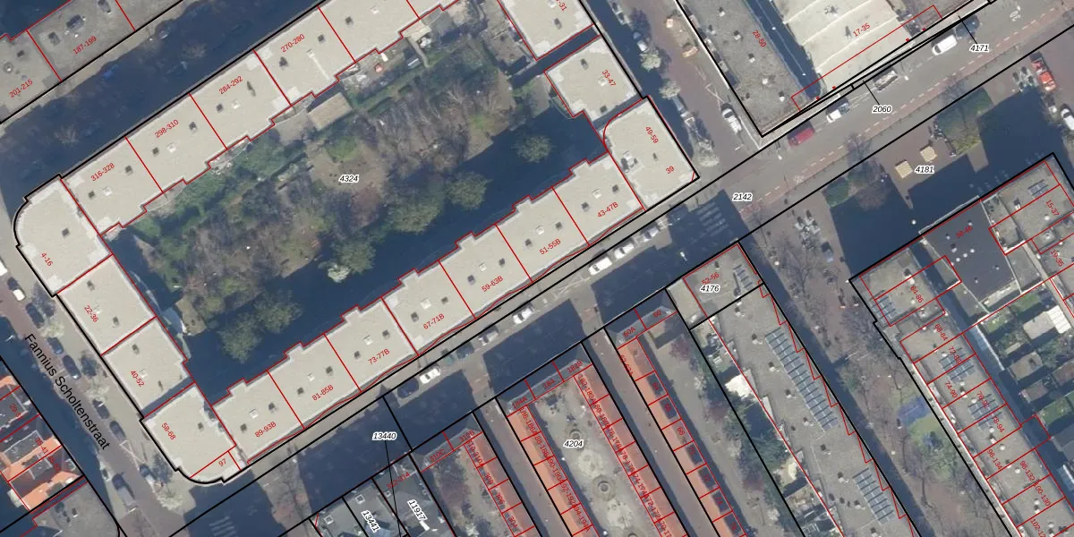 Het adres is gelegen op perceel 4324 in de sectie AD en de kadastrale gemeente 's-Gravenhage. De kadastrale aanduiding is aldus GVH21-AD-4324. Het perceel is met 7273 m² relatief groot. Het gemiddelde ligt in de kadastrale gemeente 's-Gravenhage op 908,69 m². Het kleinste perceel in de kadastrale gemeente is 0 m² groot. De grootste perceeloppervlakte is 9,1 ha. Op het perceel liggen in totaal 147 adressen. De huidige grenzen van het perceel zijn digitaal in de Basisregistratie Kadaster (BRK) geregistreerd op 02-12-2003.